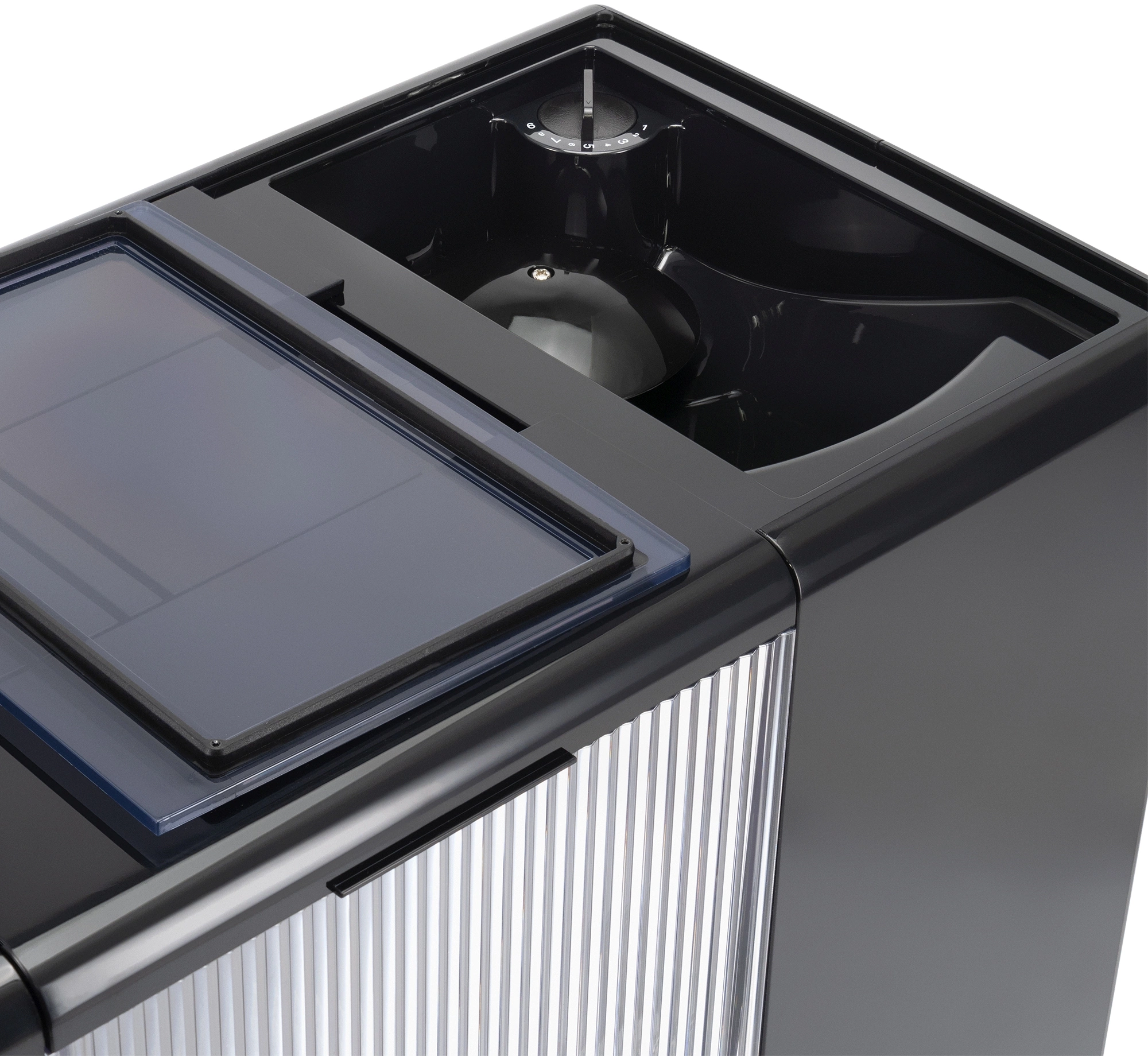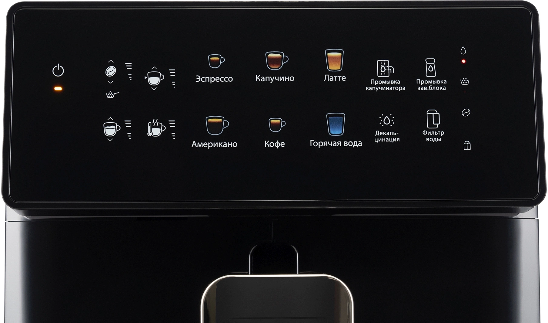 | Особенности | Прибор оснащен итальянской помпой фирмы ULKA с давлением 19 бар для максимального раскрытия вкуса любого сорта кофе. Для измельчения зерен в устройстве имеется профессиональная коническая кофемолка с контейнером на 200г и 9 степенями помола. |