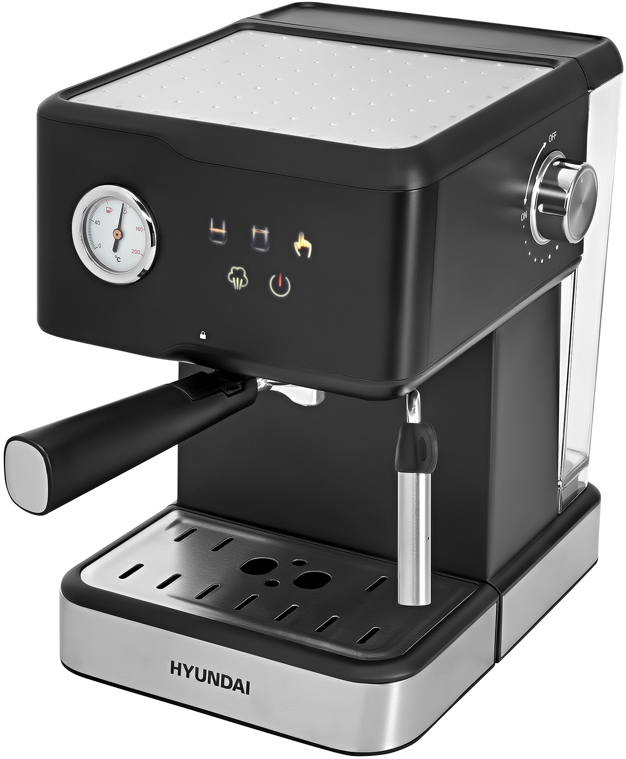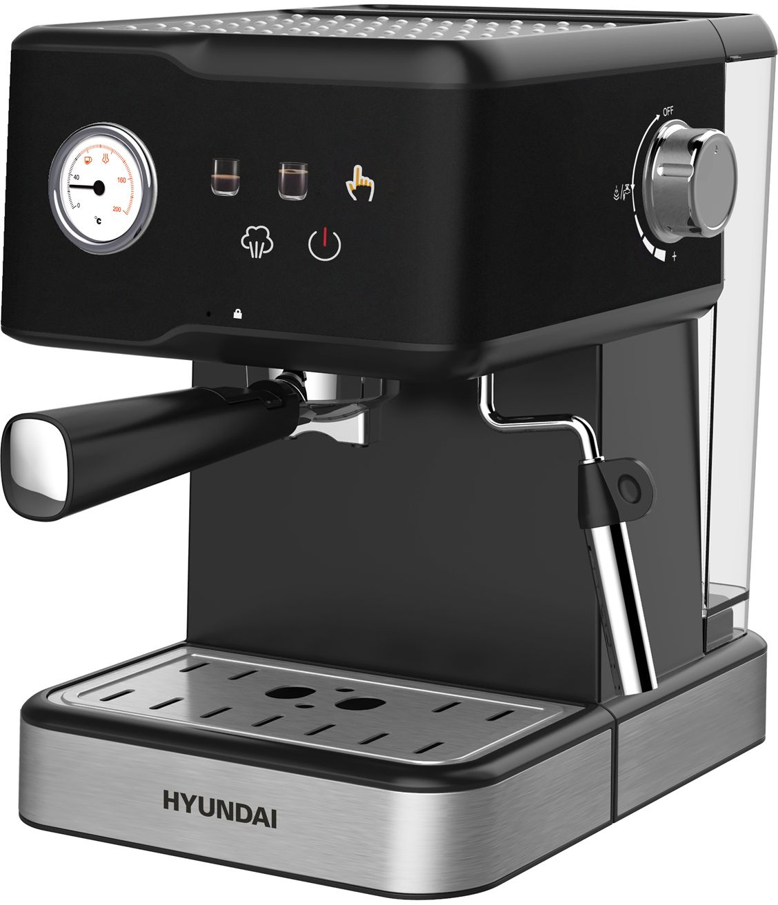Классический форм фактор с цветными иконками на сенсорном дисплее, а так же термомтером для контроля температуры заваривания. Программы на 1 и 2чашки, ручная программа для самостоятельного дозирования.