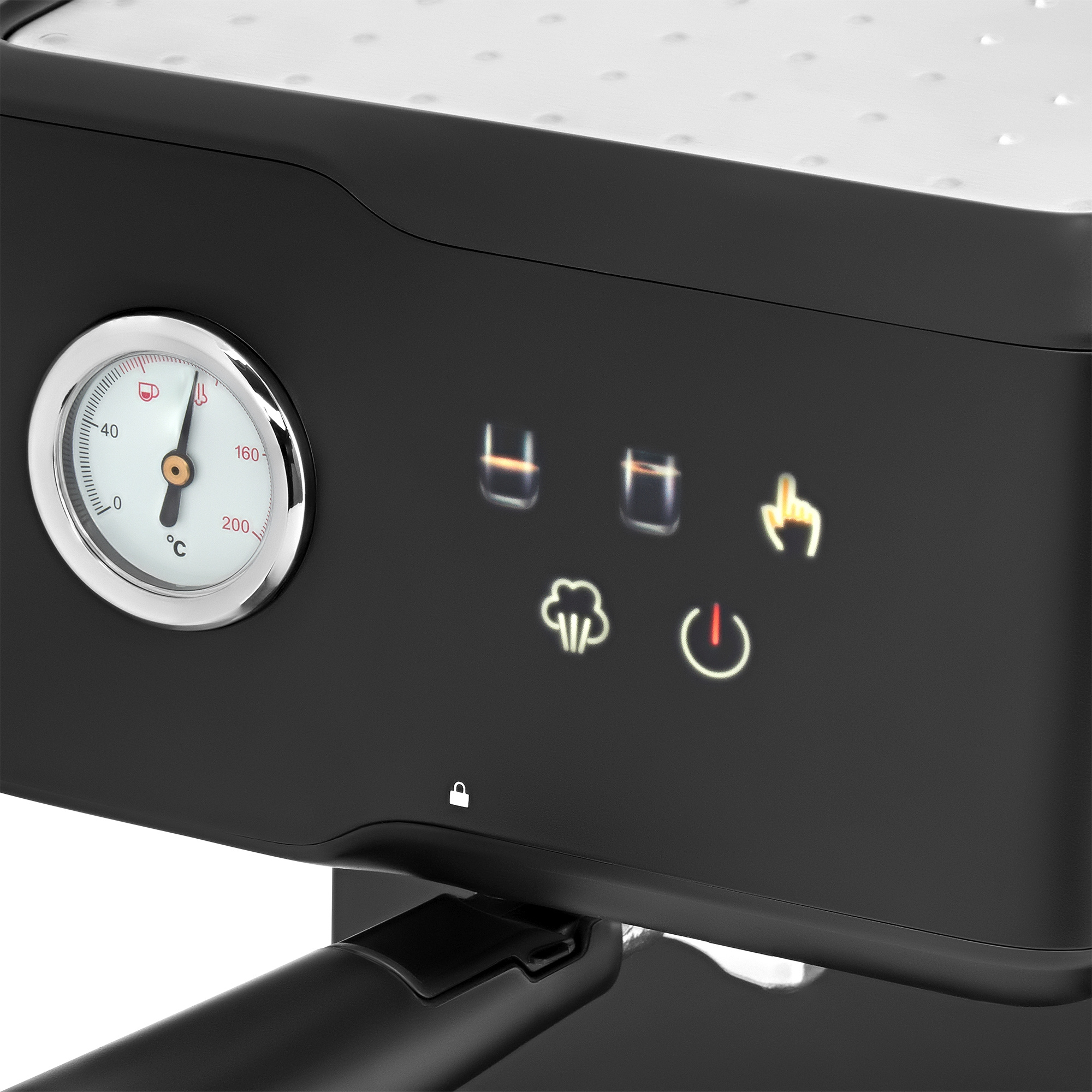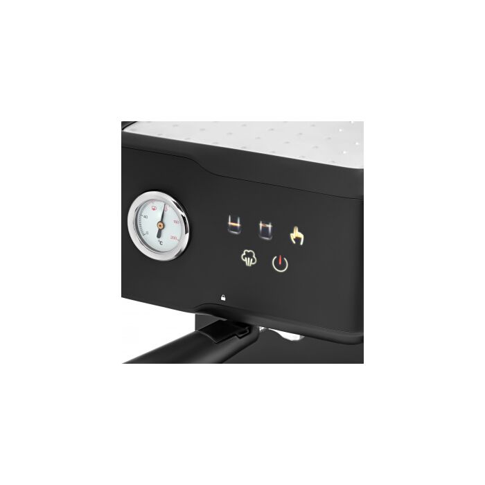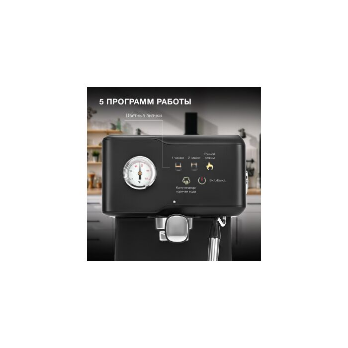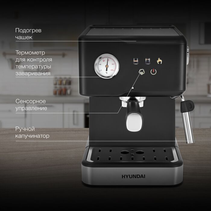 | Особенности | Помпа 20бар для качественного экстрактирования, сенсорный дисплей, цветные эконки, термомтер и ручная программа для дозирования объема порции/температуры, ручной каппучинатор для взбивания молока, площадка подогрева чашек и съемный поддон для капель, фильтр-сито на 1 и 2 порции, темпер/мерная ложка. |