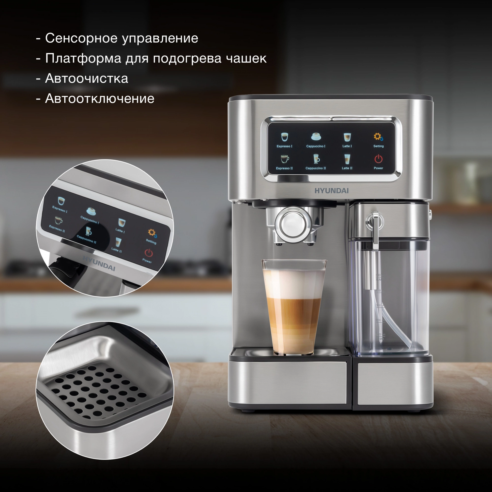 ОсобенностиВ комплекте адаптеры для приготовления молотого кофе и кофе капсулах Nespresso и Starbacks.