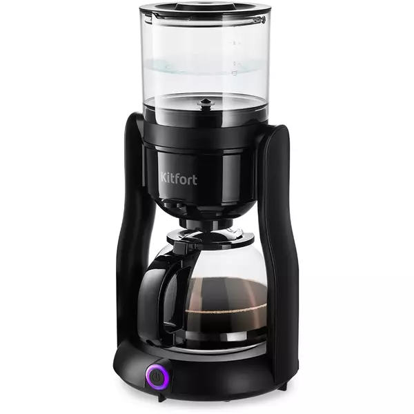 Капельная кофеварка Kitfort КТ-7136 готовит ароматный кофе одним нажатием кнопки. Прибор небольшой по размеру. Устройство полностью разборное и занимает мало места, очень удобно для хранения.