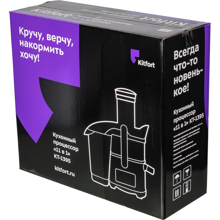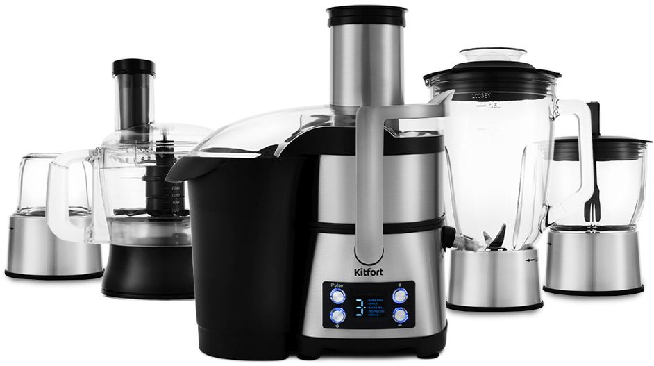 | Особенности | Кухонный процессор КТ-1395 сочетает в себе функции 11 устройств: тёрка, шинковка, соломорезка, блендер и кофемолка, центробежная соковыжималка и соковыжималка для цитрусовых, измельчитель для мяса, насадка для жидкого теста, насадка в виде ножа и мутовка. |