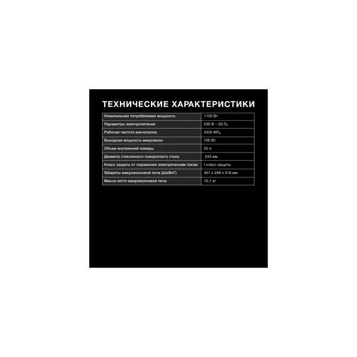Характеристики Основные характеристики Тип Микроволновая печь Тип установки Отдельностоящая Объем 20 л Мощность микроволн 700 Вт...