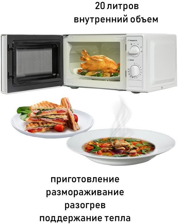 - Микроволновая печь, роликовая подставка, стеклянный поддон, гарантийный талон, инструкция на русском языке