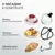 | Комплектация | Планетарный миксер; чаша; защитная крышка; насадка-венчик; насадка-крюк; насадка-лопатка; кулинарная силиконовая лопатка; сепаратор для яиц; руководство пользователя с гаратийным талоном; книга рецептов |