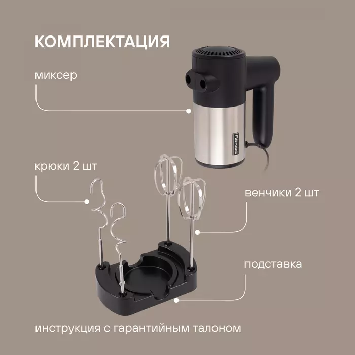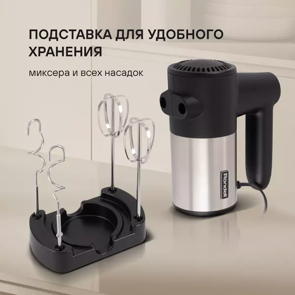 | Особенности | Подставка для миксера и насадок в комплекте |