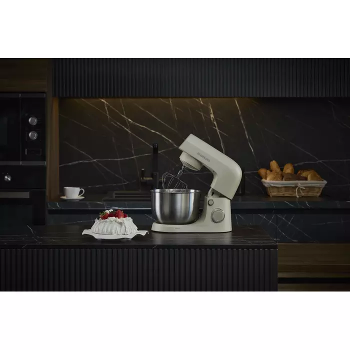 | Комплектация | Миксер; насадка-крюк; насадка-венчик; насадка-лопатка; инструкция с гарантийным талоном; книга рецептов; мультифункциональный защитный обод |