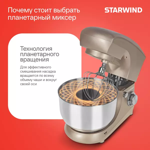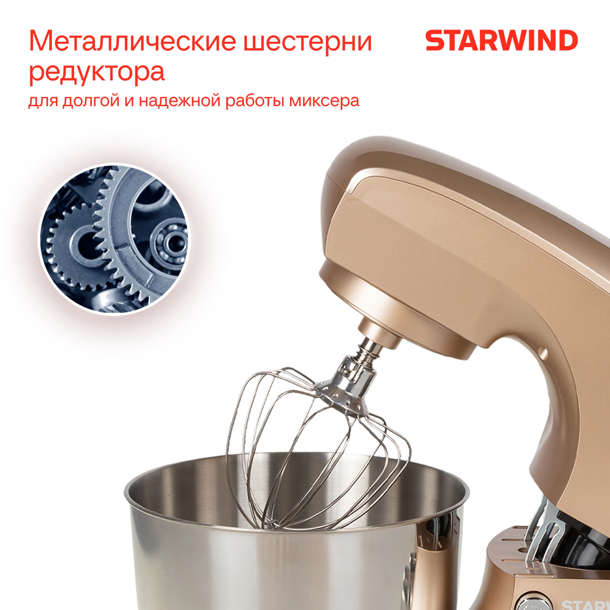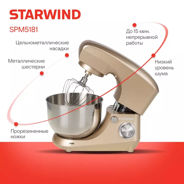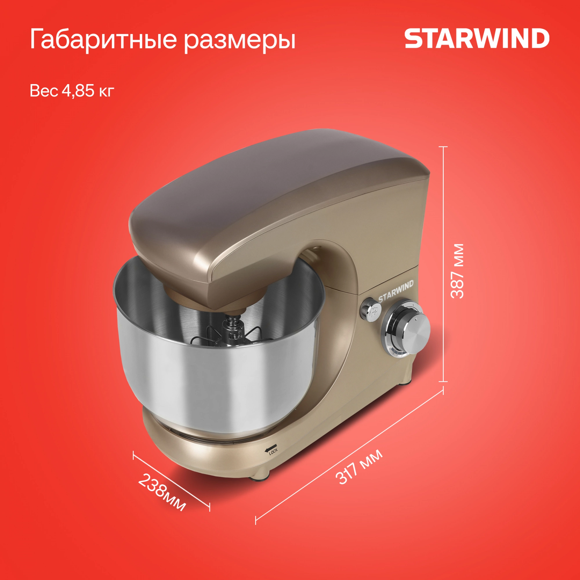 | Комплектация | Миксер; чаша; защитная крышка для чаши; насадка-венчик; насадка-лопатка; насадка-крюк; руководство пользователя с гарантийным талоном; книга рецептов |