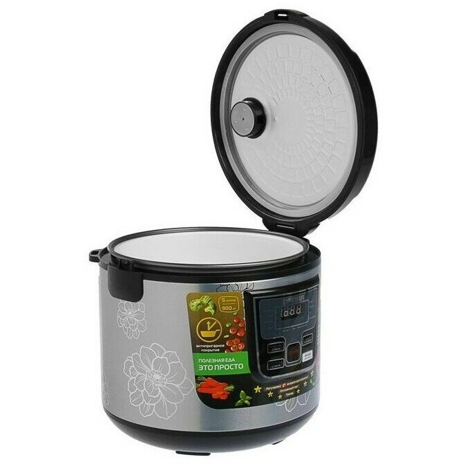 - Основная чаша для приготовления с антипригарным покрытием. Полезный объем чаши составляет четыре литра, этого вполне хватает что бы приготовить обед для семьи из четырех человек