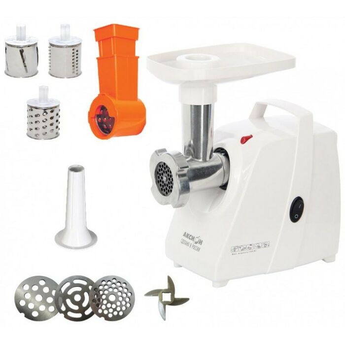 - Электрическая мясорубка М34 «Аксион» - одна из лучших моделей по сочетанию параметров «цена-качество». Три решетки с отверстиями разного диаметра позволят получить фарш нужной консистенции для приготовления самых разных блюд
