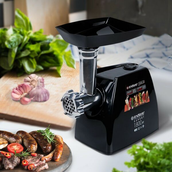 - Нож из стали, прорезиненные нескользящие ножки, насадки для колбас и кеббе