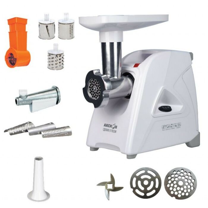 - Электрическая мясорубка М35 «Аксион» мощностью 1500 Вт обеспечит высокое качества фарша из всех видов мяса, рыбы, грибов, овощей и других продуктов. Функция «Реверс» поможет избежать наматывания жилок на шнек при переработке мяса низкого сорта