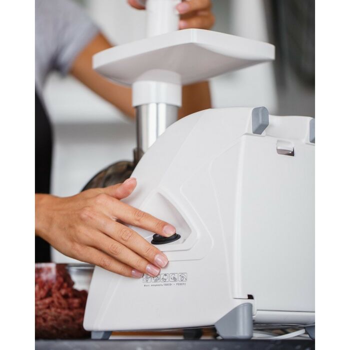 - Устойчивые нескользящие ножки для фиксации мясорубки на поверхности стола