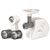- Данная модель снабжена функцией "реверс": кратковременно меняется направление вращения шнека приставки-мясорубки. Корпус мясорубки и приемного лотка для продуктов изготовлены из прочного пластика белого цвета, на нижней части корпуса расположены прорезиненные ножки для дополнительной устойчивости.