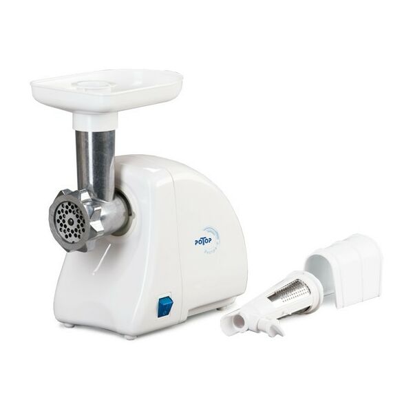 - Корпус мясорубки и приемного лотка для продуктов изготовлены из прочного пластика белого цвета, на нижней части корпуса расположены прорезиненные ножки для дополнительной устойчивости