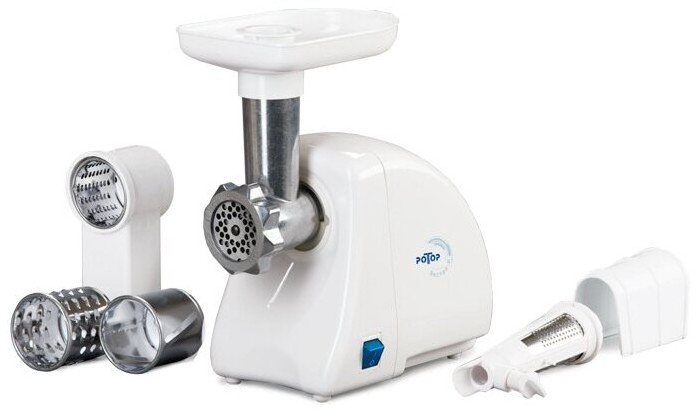 - Насадки: насадка-терка, насадка для шинковки, диск для фарша