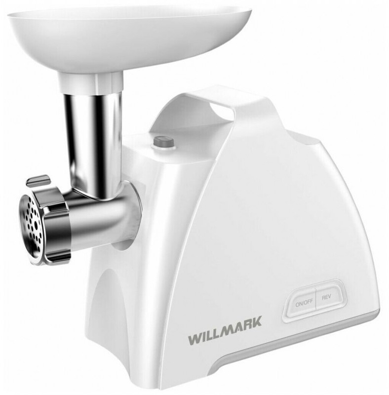 - Электрическая мясорубка обладает расширенным набором функций и аксессуаров. Рабочая часть устанавливается на мясорубку под наклоном и поворачивается до вертикального положения, а снимается путем нажатия на кнопку расположенную на передней части корпуса и поворотом её вправо