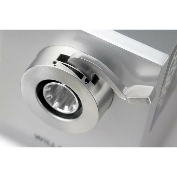 - Для быстрой и удобной установки используется головы используется мощный металлический рычаг-фиксатор. На корпусе расположен переключатель работы мясорубки. Положение «ON» для начала перемалывания продуктов. Кнопка «REV» для очистки рабочей камеры и вращения шнека в обратную сторону - РЕВЕРС.