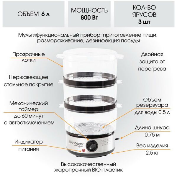 - Мультифункциональный прибор: приготовление пищи, размораживание, дезинфекция посуды, Прозрачные лотки - удобно следить за готовностью блюда