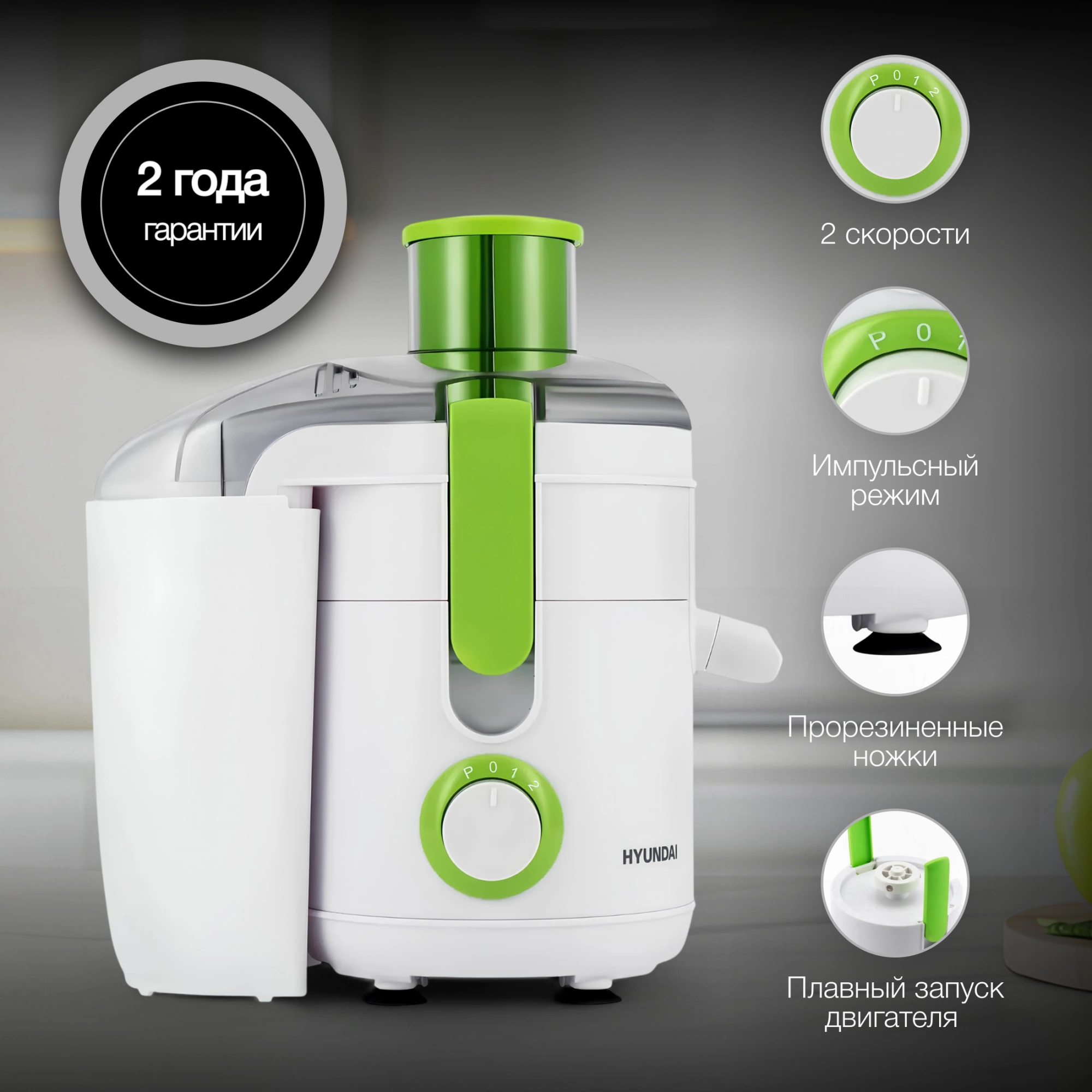 Соковыжималка центробежная Hyundai HY-JE1615 500Вт рез.сок.:450мл. белый/зеленый