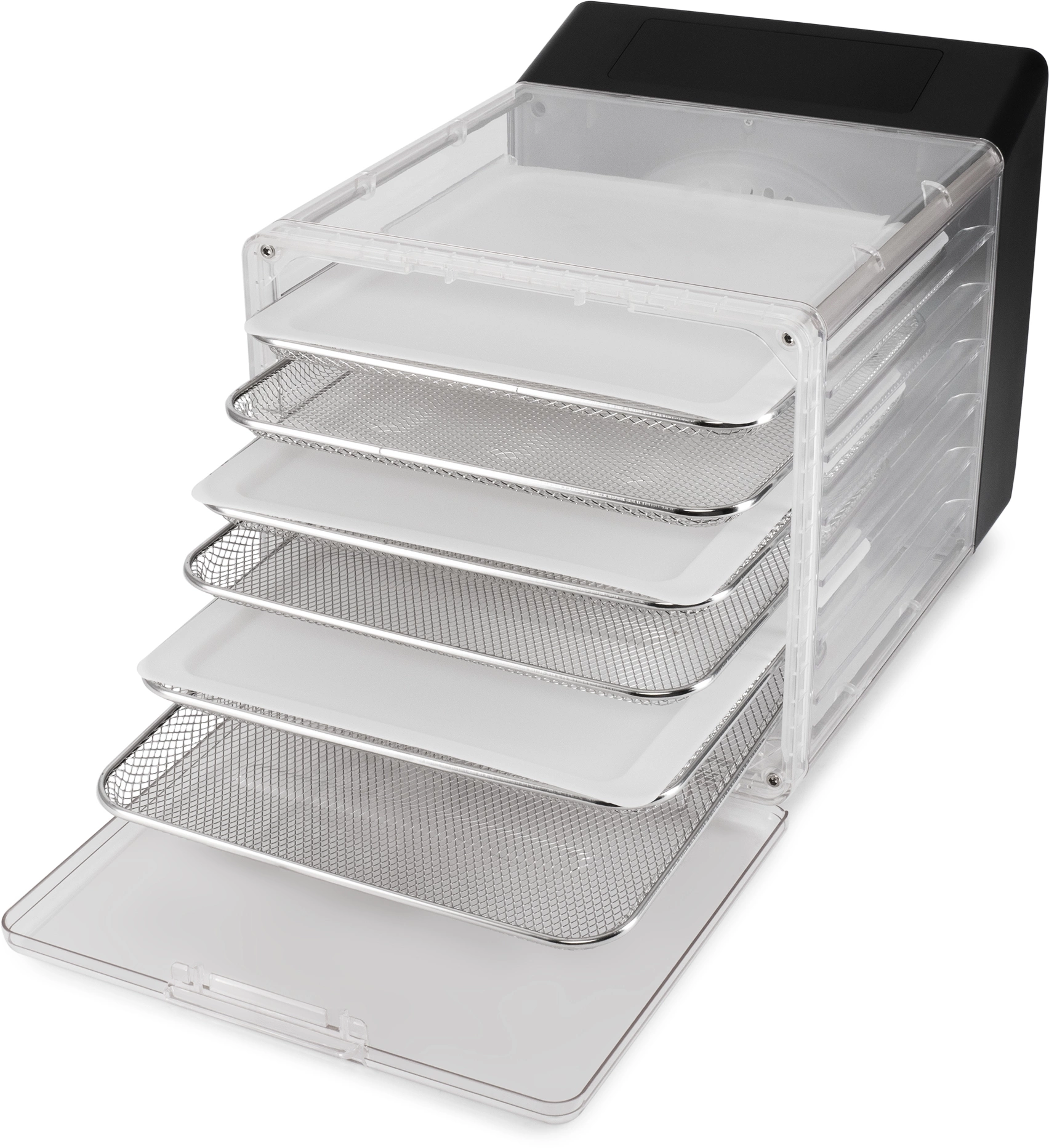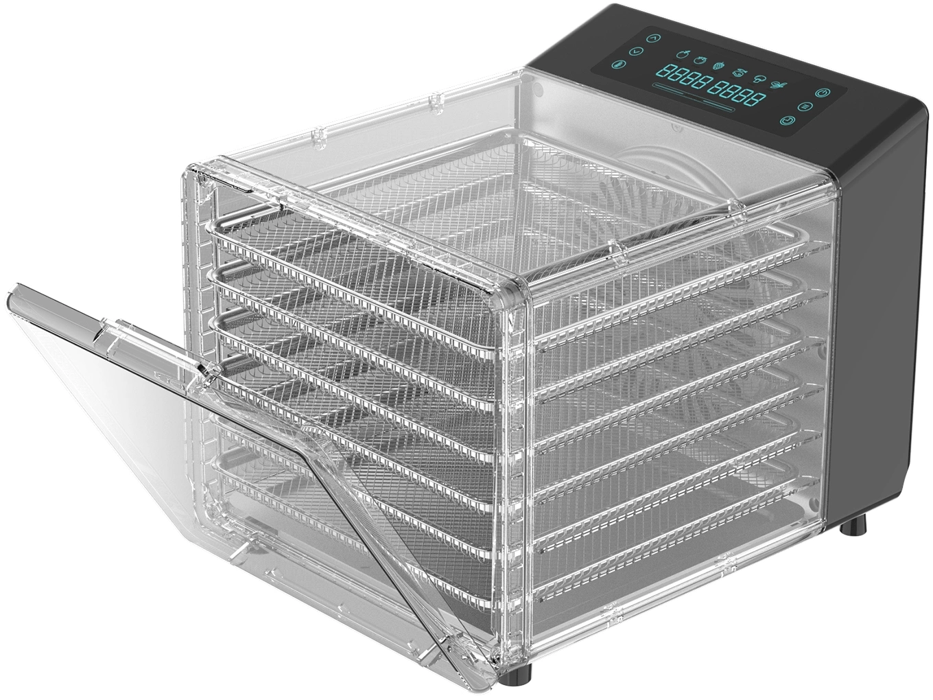 Инновационная, разборная сушильная камера с регулировкой температуры и таймером, для сушения овощей и фруктов, грибов и трав, а так же вяленья мяса и рыбы. Весь необходимый функционал, в удобном форм-факторе с сенсорным управлением.