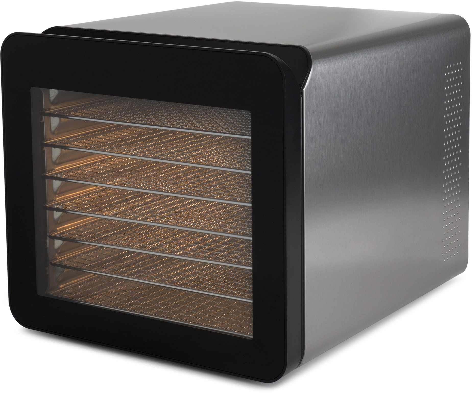 Сушильная камера в металлическом корпусе, с регулировкой температуры и таймером, для сушения овощей и фруктов, грибов и трав, а так же вяленья мяса и рыбы. Весь необходимый функционал, в удобном форм-факторе с сенсорным управлением.