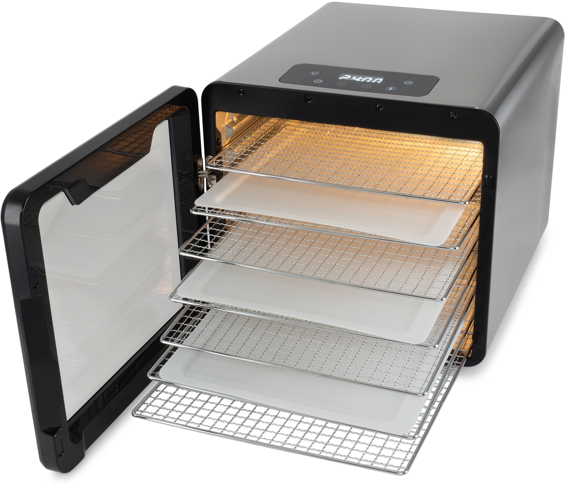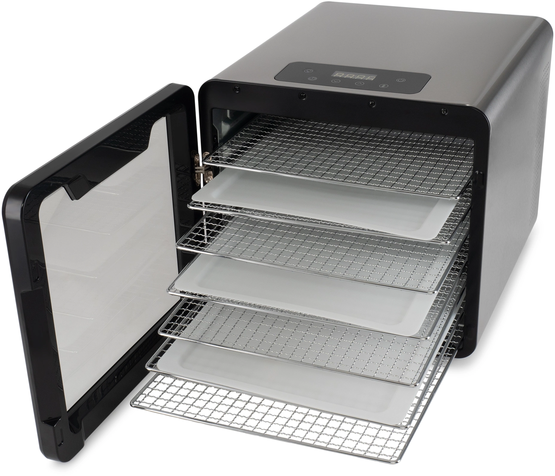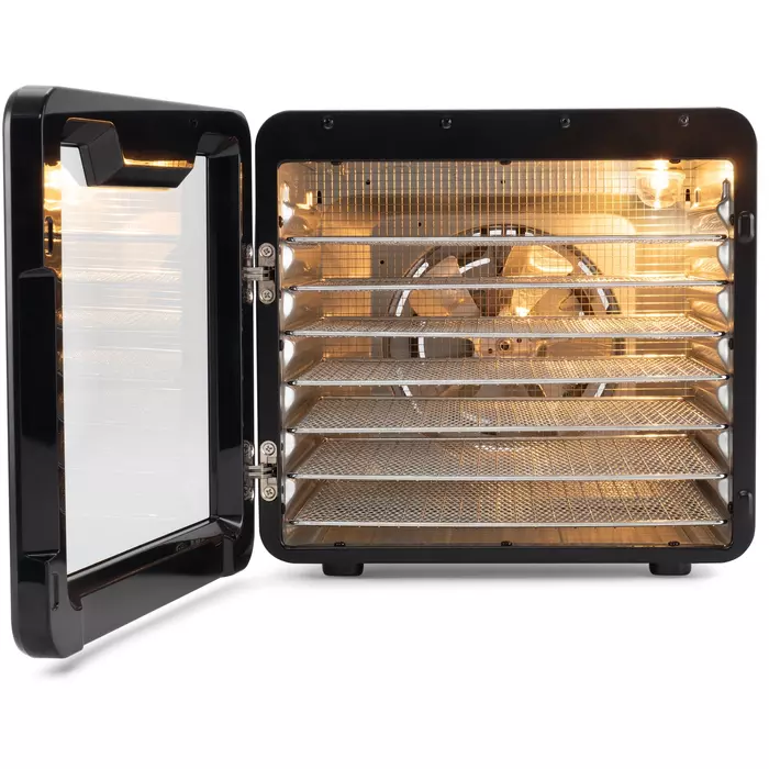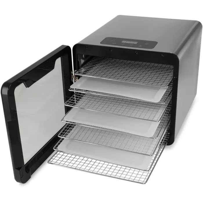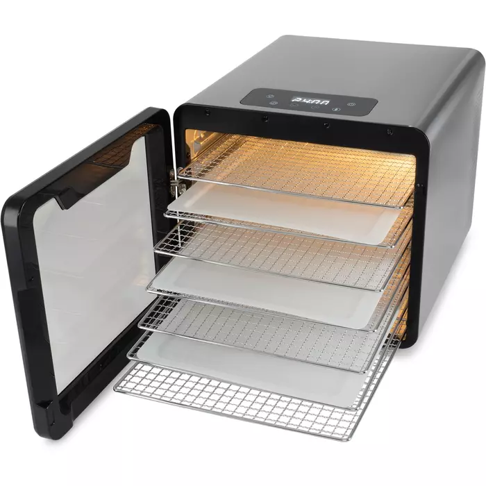 Сушильная камера в металлическом корпусе, с регулировкой температуры и таймером, для сушения овощей и фруктов, грибов и трав, а так же вяленья мяса и рыбы. Весь необходимый функционал, в удобном форм-факторе с сенсорным управлением.