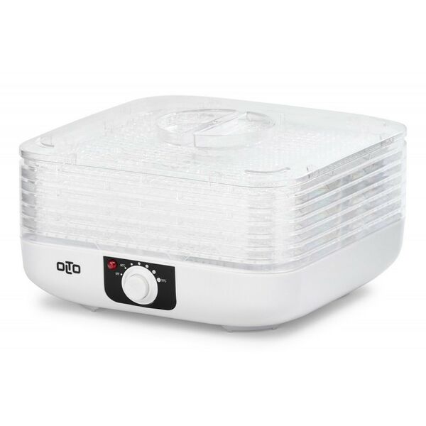 Сушилка для овощей и фруктов OLTO FD-105 снабжена шестью пластиковыми регулируемыми по высоте поддонами и конвекционным вентилятором, который равномерно разгоняет тёплый воздух, что обеспечивает оптимальную обработку продуктов. Нескользящее основание помогает ей сохранять устойчивое положение даже при установке на гладкой поверхности. Максимальная загрузка до 6 килограммов.