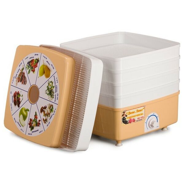 Электрическая сушилка "Дива-Люкс"создана для высушивания овощей, фруктов, грибов, ягод, трав, мяса, рыбы и других продуктов в домашних условиях. Надежная, компактная и простая в эксплуатации сушилка поможет сохранить для зимы продукты, которые не поместились в морозильную камеру, а также приготовить домашнюю лапшу, сухарики или вяленую рыбу.