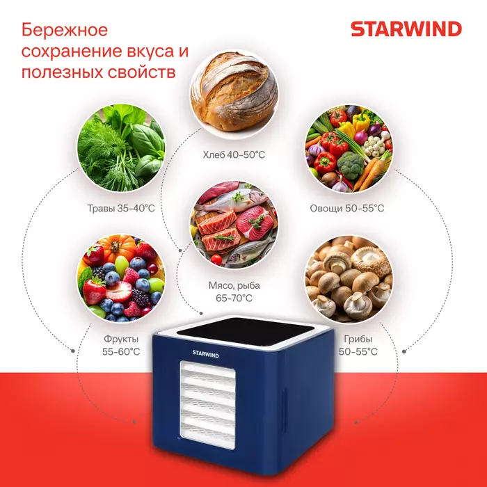 Сушильная камера Starwind SFD9534 предназначена не только для сушки овощной и фруктовой продукции, но и для вяления рыбы, мяса. С этой целью в...