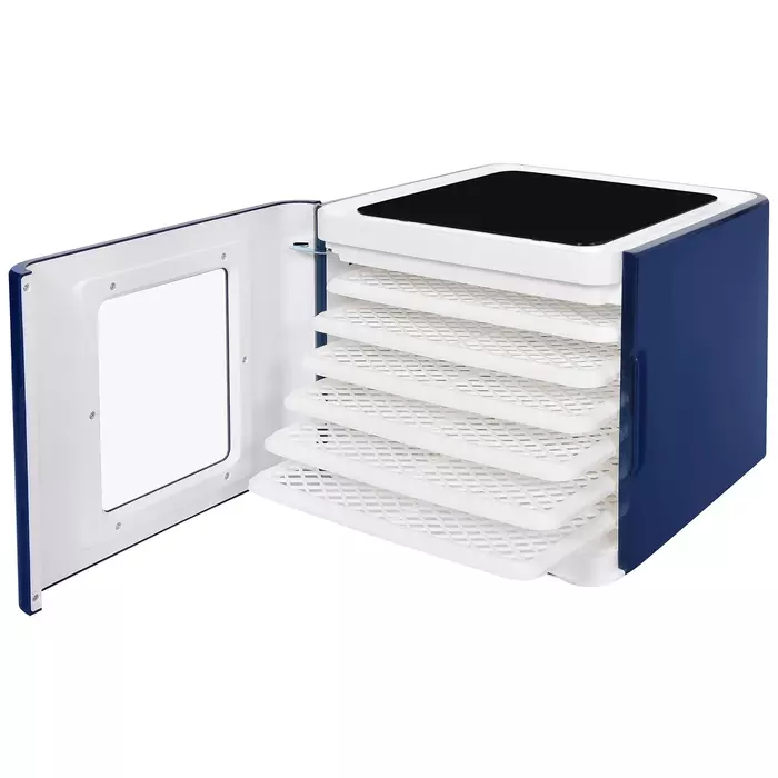 Сушильная камера Starwind SFD9534 предназначена не только для сушки овощной и фруктовой продукции, но и для вяления рыбы, мяса. С этой целью в конструкции присутствует 12 поддонов различного типа, оптимально соответствующих конкретным продуктам питания. Обезвоживание продовольствия происходит быстро и равномерно за счет возможностей встроенного термоэлемента мощностью 400 Ватт, а также ускоренного движения воздушных потоков. Они направляются вертикально вентилятором, функционирующим в автоматическом режиме. В результате максимально сохраняются питательные вещества и вкус. Принудительная вентиляция избавляет от необходимости менять лотки местами. Рабочие температуры находятся в диапазоне +35...+70 градусов Цельсия. Допускается установка таймера до 24 ч.