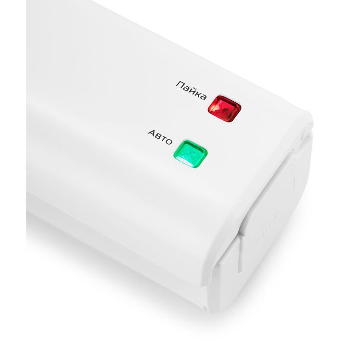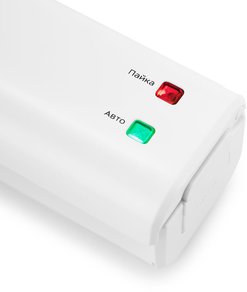 | Особенности | Прибор может работать в 2 режимах. При нажатии кнопки «Авто» вакууматор автоматически откачивает воздух из пакета, а затем запаивает его. А с помощью кнопки «Пайка» устройство запаяет пакет без вакуумирования. |