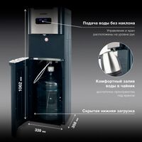 Характеристики Тип кулера: напольный Тип охлаждения / нагрева воды: электронный Размещение бутыли: нижнее Подача воды: горячая, комнатная, холодная...