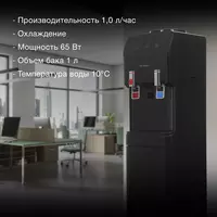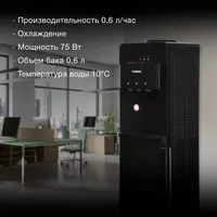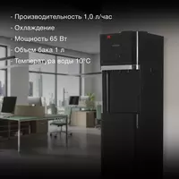 Характеристики Тип Пурифайер Размещение напольный Тип охлаждения / нагрева воды электронный Подача воды горячая, холодная Цвет черный...