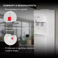Характеристики Тип Кулер Размещение напольный Размещение бутыли верхнее Шкафчик для посуды Да Подача воды горячая, комнатная Цвет...