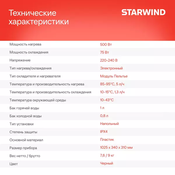 | Производительность системы охлаждения воды | 1.3 л/ч |