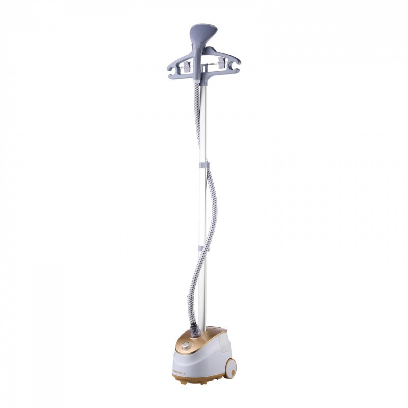 - Отпариватель, гарантийный талон, инструкция на русском языке, телескопическая стойка, защитная рукавица, складная вешалка для одежды, насадка-щетка для удаления ворса