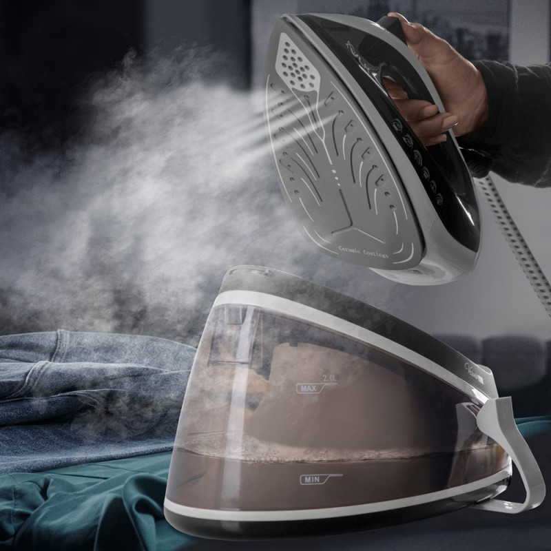 - Вам не придется отключать прибор, тратить время, чтобы сходить долить воду, теперь всё стало просто. Керамическое покрытие способствует лучшему скольжению по поверхности ткани, по сравнению с другими видами покрытий