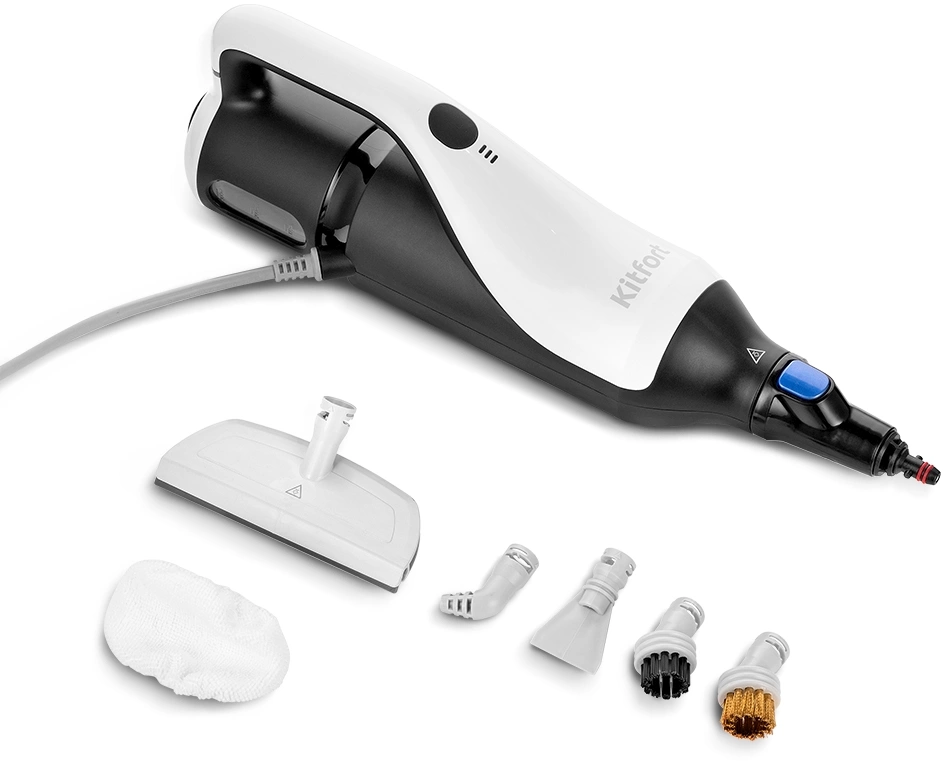 | Комплектация | тряпка для пола, рамка для ковра, паровой шланг, струйная насадка, насадка для отпаривания с резиновым скребком, тряпка для отпаривания, угловая насадка, скребок, плоская нейлоновая щетка, круглая нейлоновая щетка, круглая латунная щетка, мерный стакан |