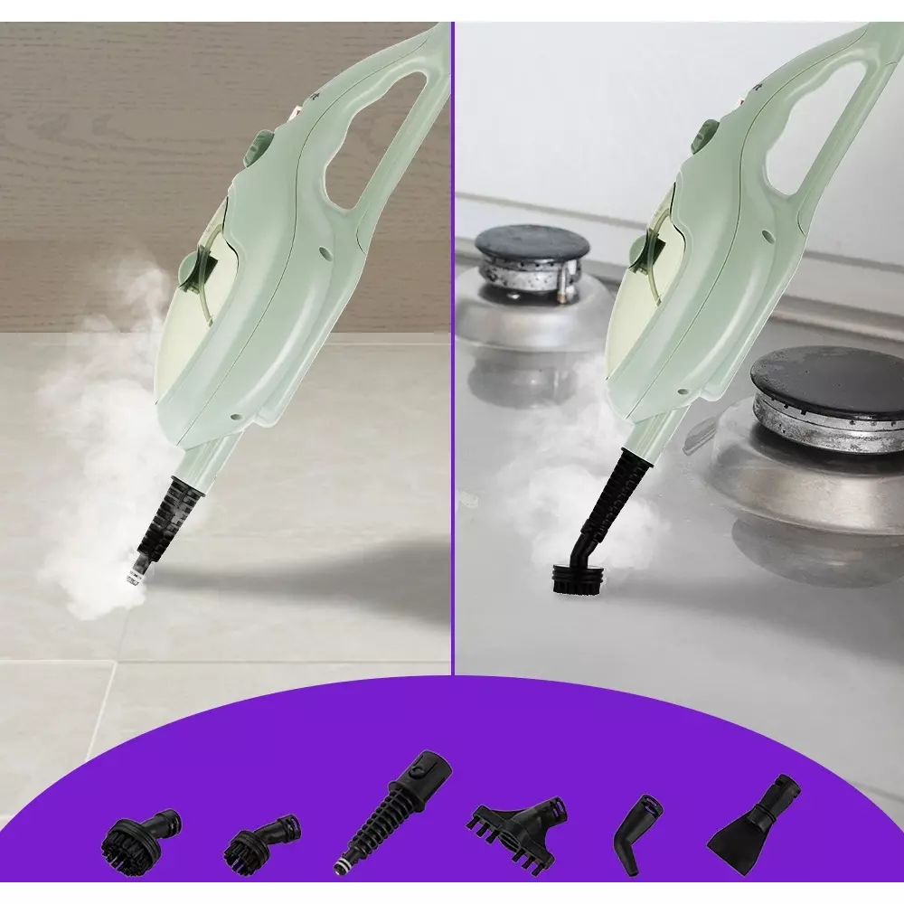 | Комплектация | насадка для пола с крышкой отсека для батареек, тряпка для пола, рамка для ковра, насадка для отпаривания со скребком, тряпка для отпаривания, переходник на паровое сопло, плоская нейлоновая щетка, малая круглая нейлоновая щетка, большая круглая нейлоновая щетка, угловая насадка, плоская насадка |