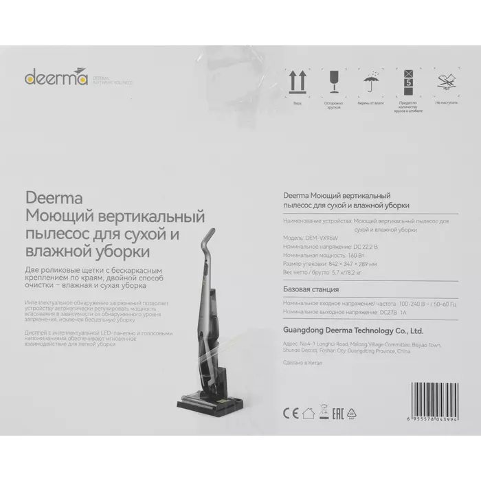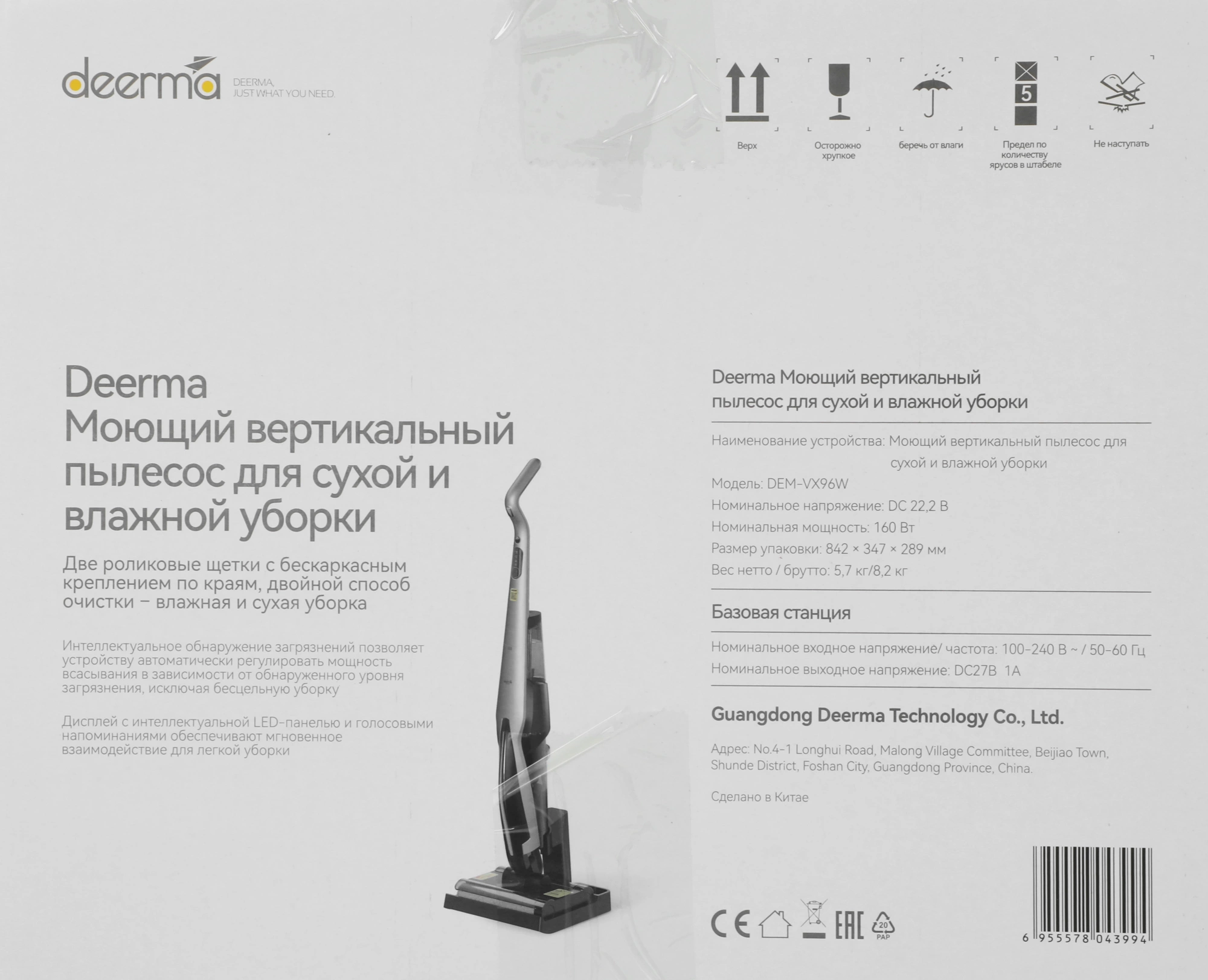 Ручной беспроводной мойщик пола Deerma DEM-VX96W – незаменимый помощник в уходе за домом. Он поможет убрать сухие и жидкие загрязнения одним разом. Мойщик оснащен шваброй с двумя вращающимися валиками и двойным приводом, что позволяет качественно промывать пол.