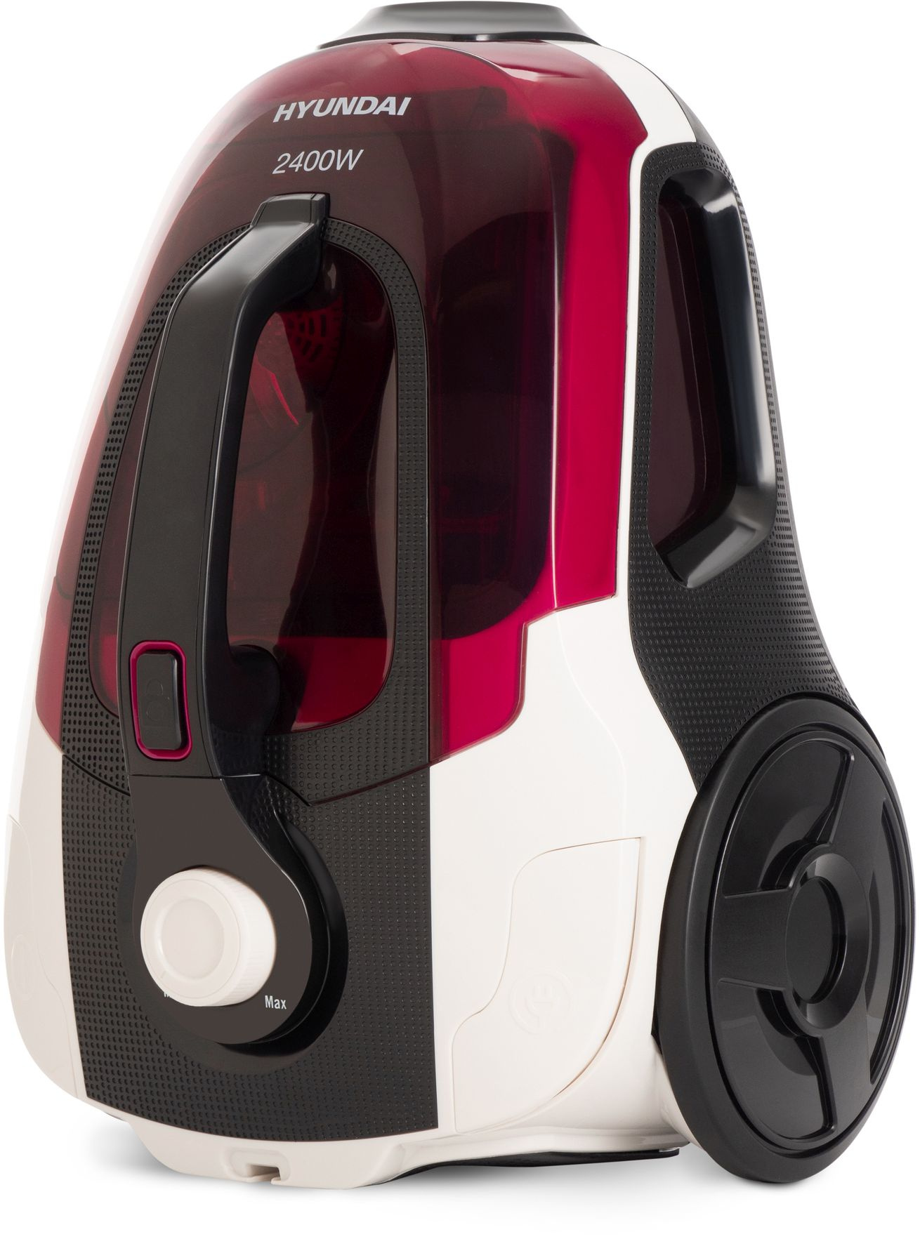 Для удобства перемещения у Hyundai HYV-C3370 предусмотрена пара колес, а также имеется ручка на верхней части устройства.