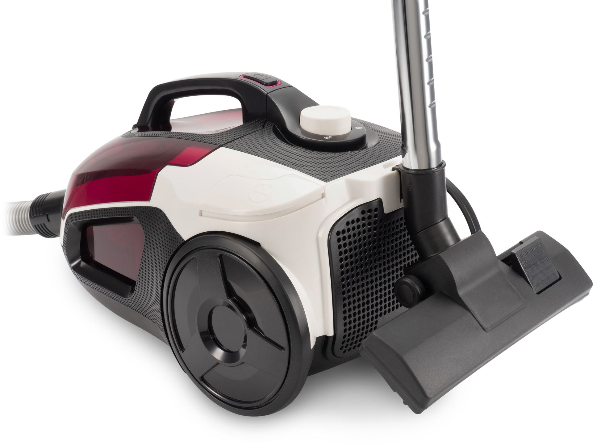 Мощность мотора девайса составляет 2400 Вт, однако на всасывание используется 380 Вт. Параметр поддается регулировке, для этого есть специальный орган. Он расположен наверху лёгкого и прочного корпуса девайса, выполненного из пластика. Стоит отметить, что звук работы устройства остаётся неизменно тихим в любом режиме и не превышает 88 дБ.