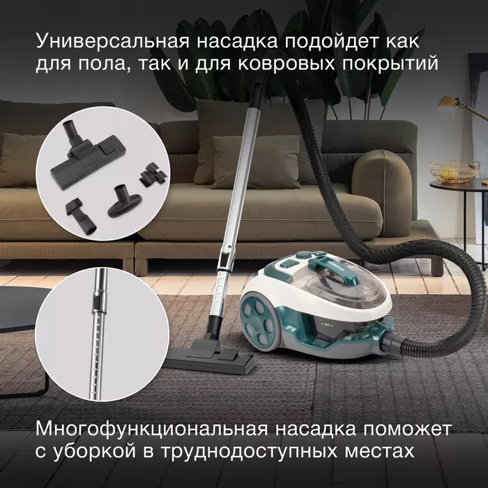 | Аксессуары в комплекте | насадка для пола и ковров, щелевая насадка, щетка |