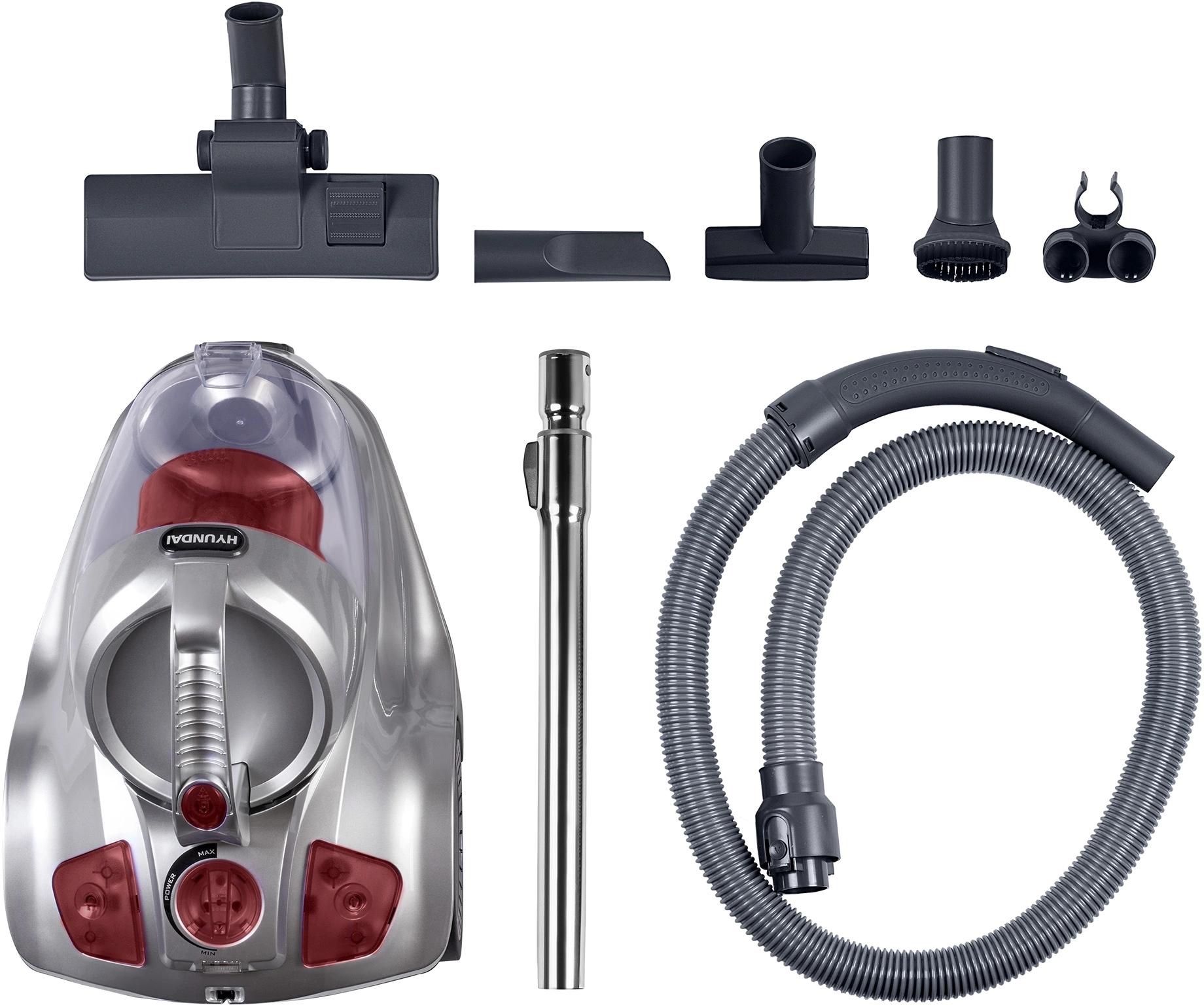 Пылесос Hyundai HYV-C4570 2400Вт, серебристый/красный
