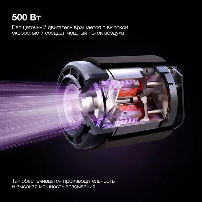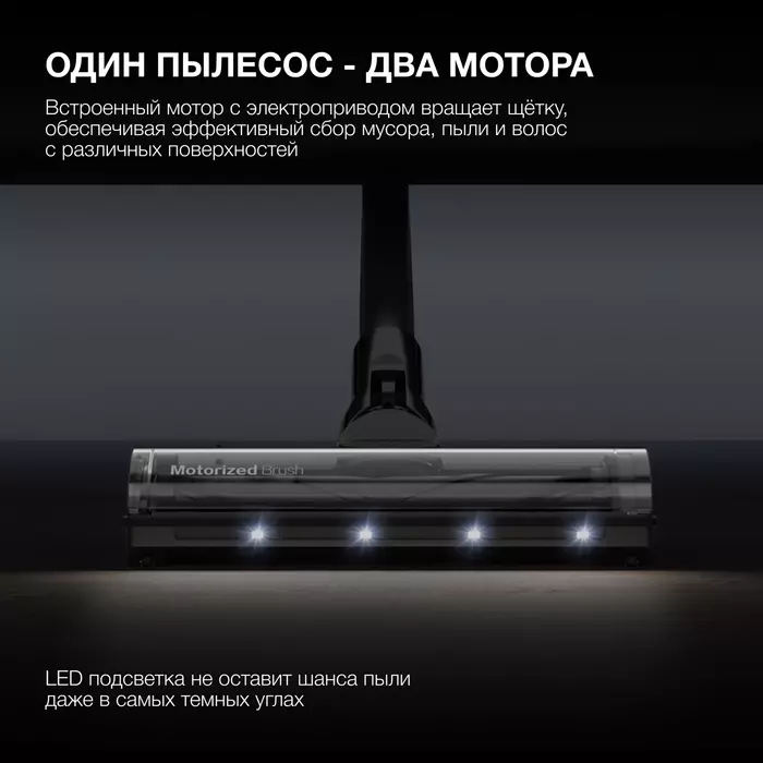 | Особенности | моторизированная щетка с подсветкой, вертикальная парковка, бесщеточный двигатель, фильтр HEPA 13 |
