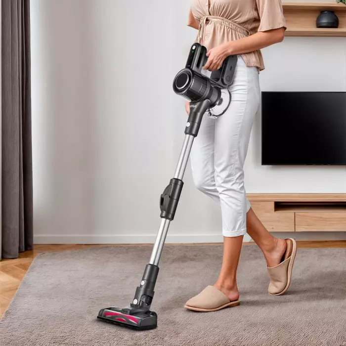 Беспроводной вертикальный пылесос КТ-5168 удобен при локальной и генеральной уборке. Он компактен, всегда под рукой и готов к работе. Утомительный процесс превращается в лёгкое и увлекательное занятие, а время уборки сокращается вдвое!