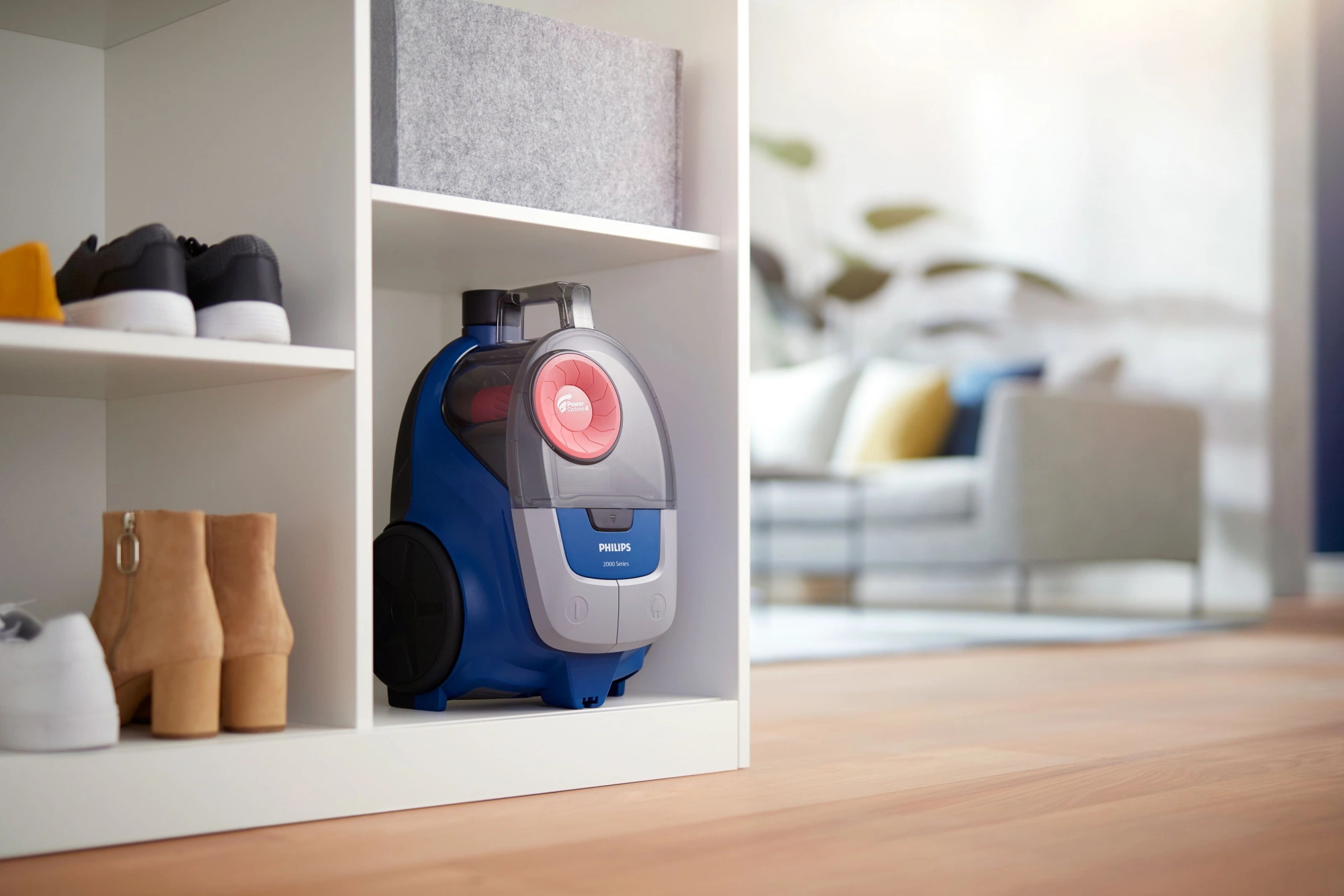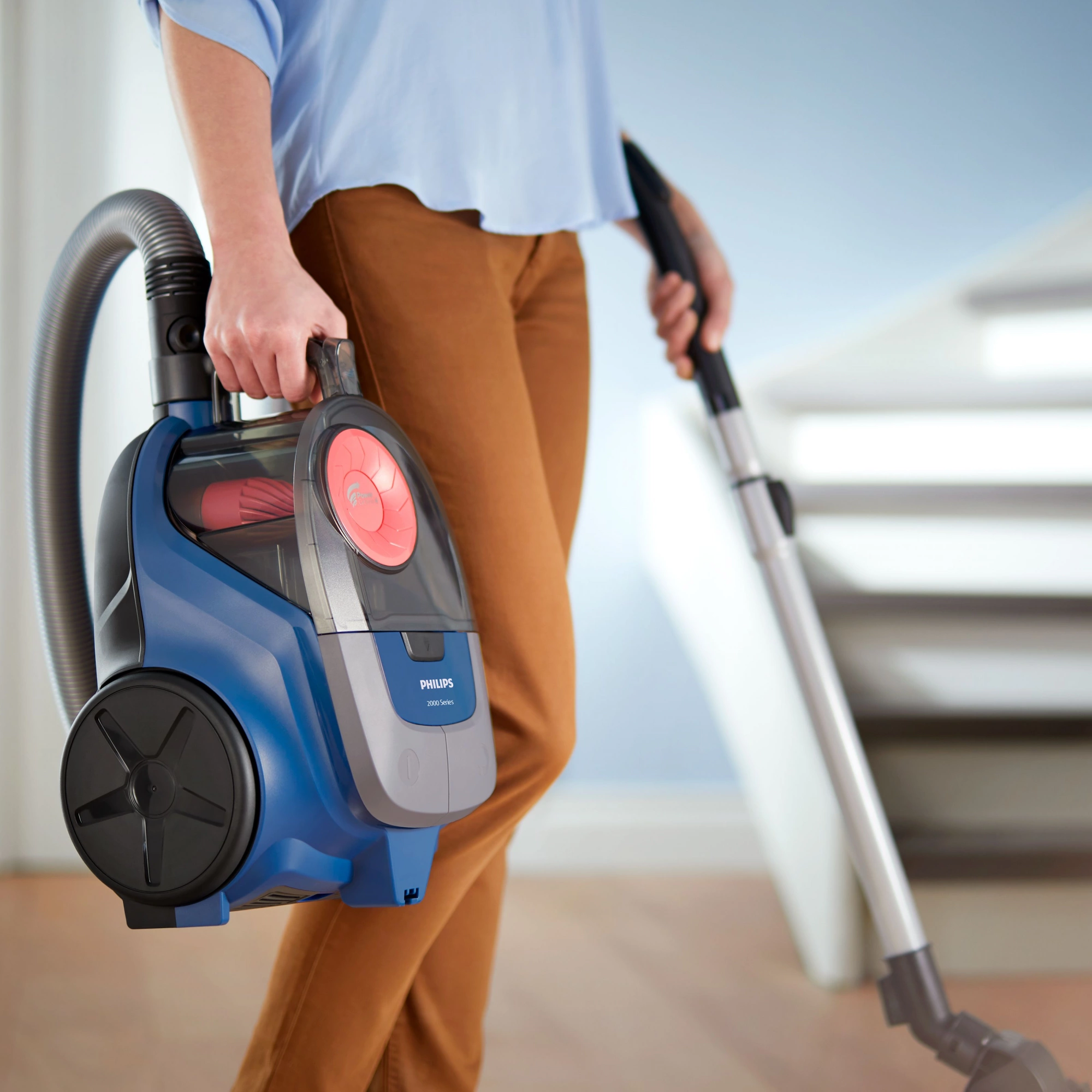 Эффективная очистка и простота уборки с пылесосом Philips Series 2000 без мешка для сбора пыли. Наслаждайтесь великолепными результатами уборки каждый раз благодаря технологии PowerCyclone 4 и универсальной насадке для любого типа поверхностей.