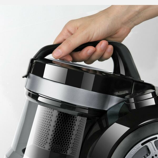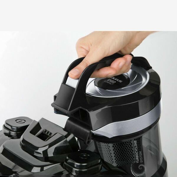 - Кроме того, данная модель обладает отличной системой фильтрации, а для удобства перемещения прибора по полу служат прорезиненные колеса и ручка для переноски