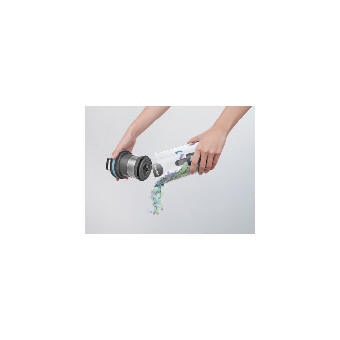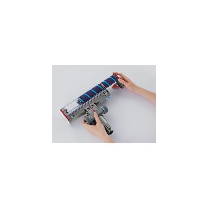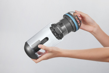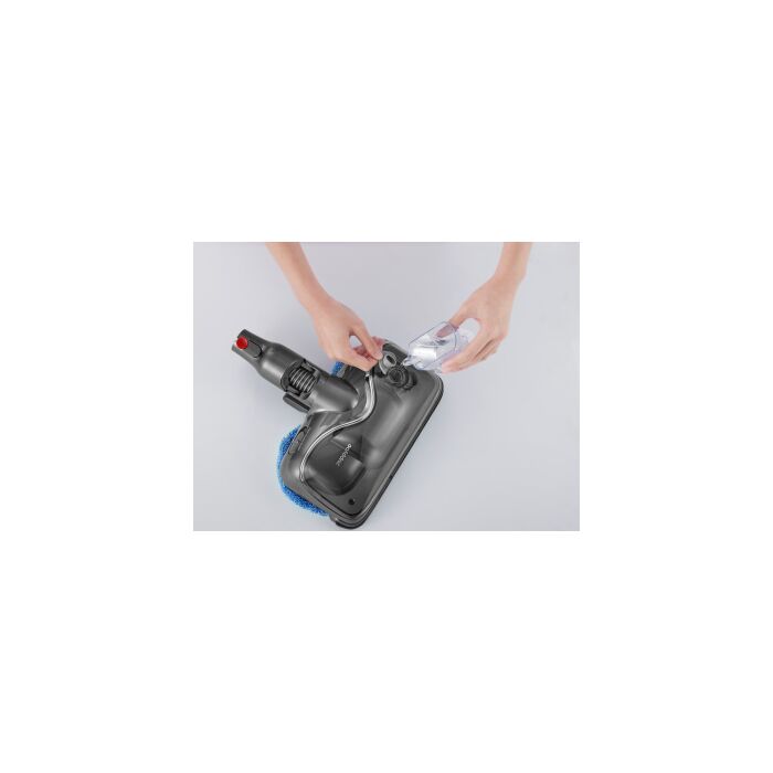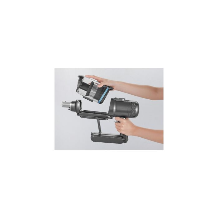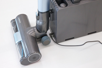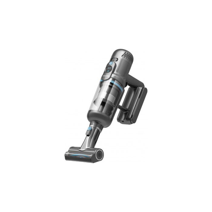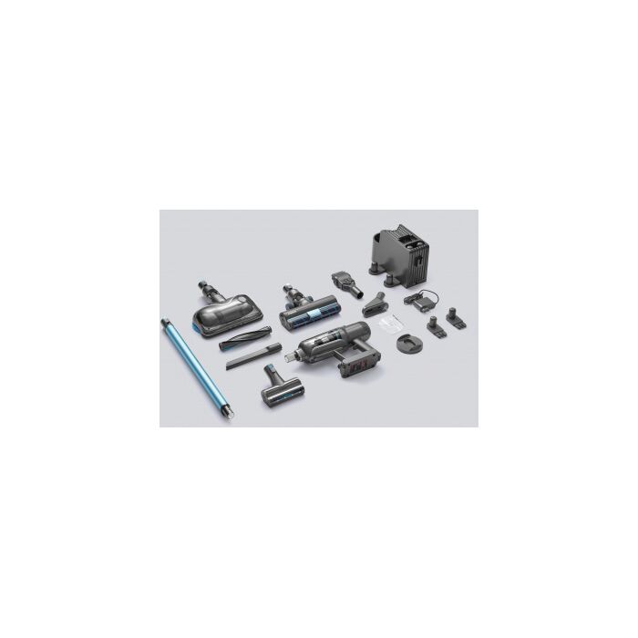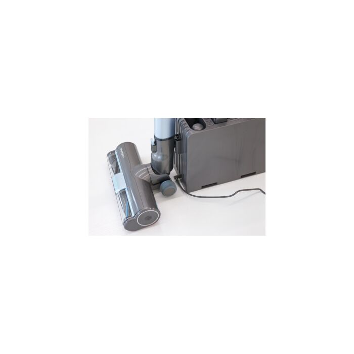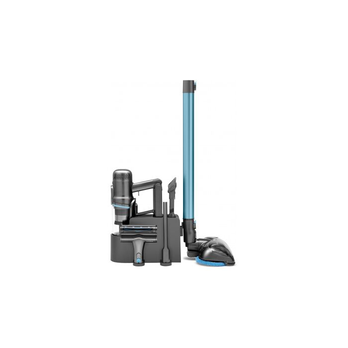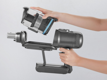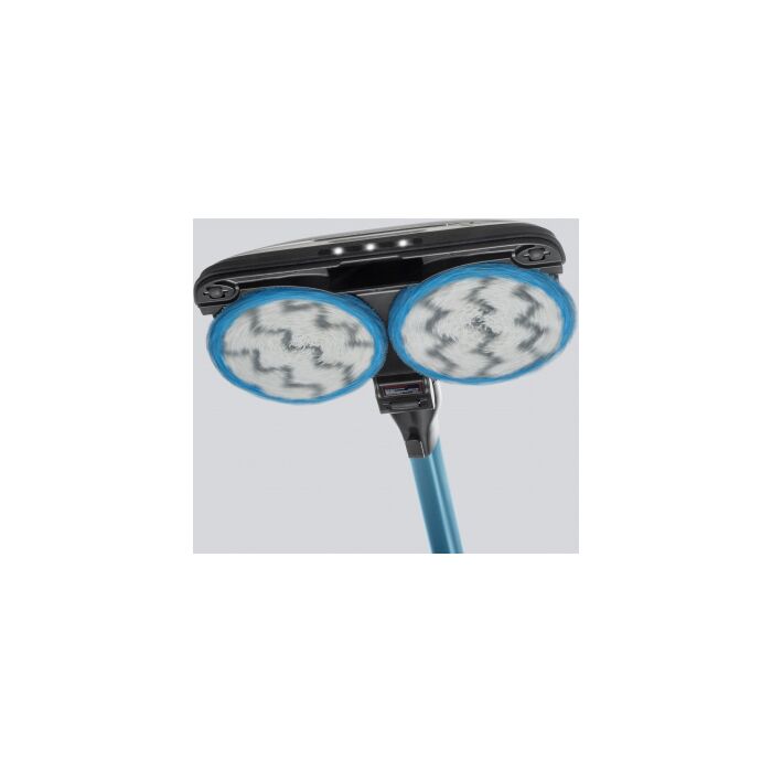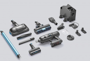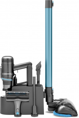 Стильный дизайн с LED - подсветкой. Время автономной работы аккумулятора 60 минут, а время полного заряда от сети 3,5 часа. Оснащен телескопической ручкой, 6 режимов работы устройства: 3 режима сухой, 2 режима влажной уборки и режим полирования полов. В комплекте есть крепление – хранение,зарядка.